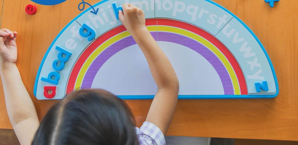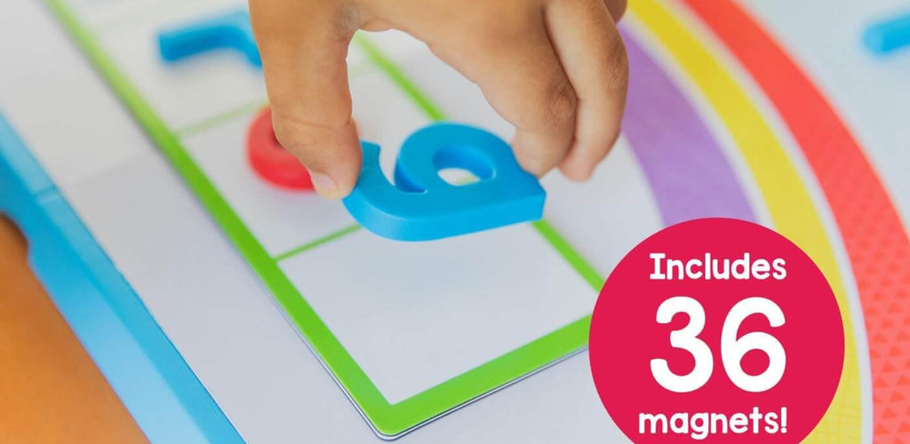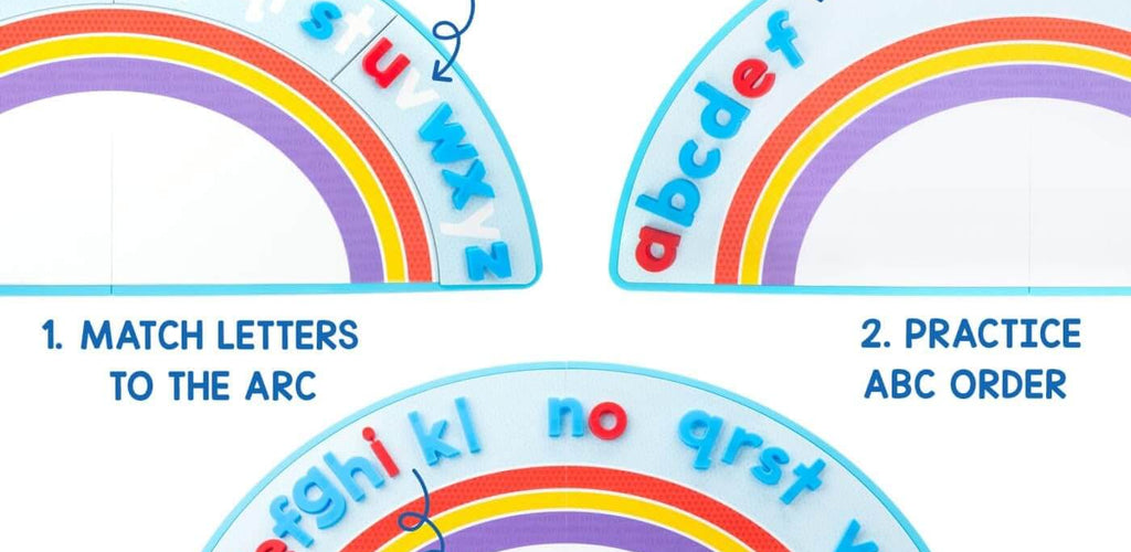 The set uses the alphabet arc strategy, a widely used teaching method that visually arranges letters in a curved arc to help children understand letter sequence and relationships. By placing magnetic letters along the arc, children develop phonemic awareness, spelling skills, and confidence with early reading concepts.