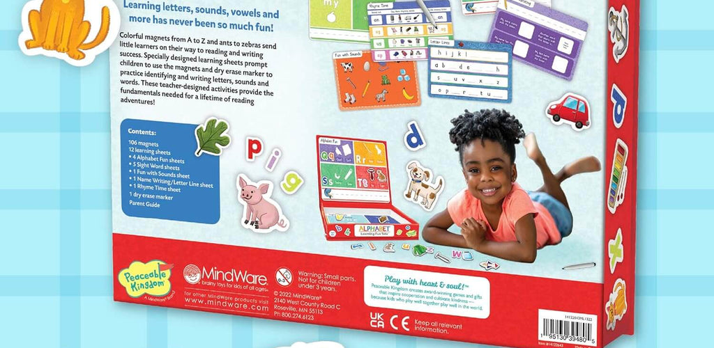 Includes alphabet cards, letter tiles, and activity sheets