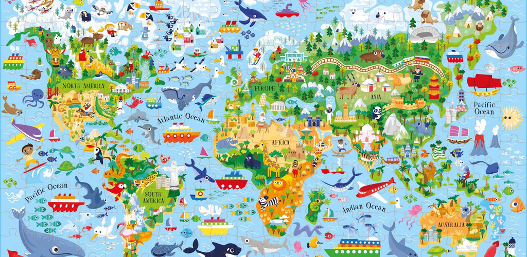 Includes a 300-piece jigsaw puzzle of the world map with colourful illustrations π