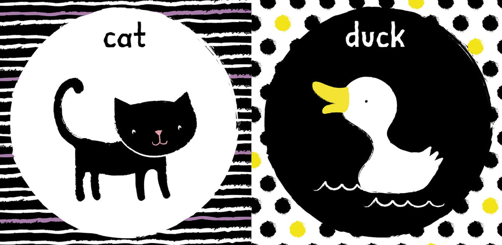 Features high-contrast black and white illustrations to support early visual development