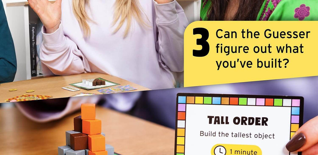Creative family game where players sculpt fun and clever clues using colorful building blocks 🧱