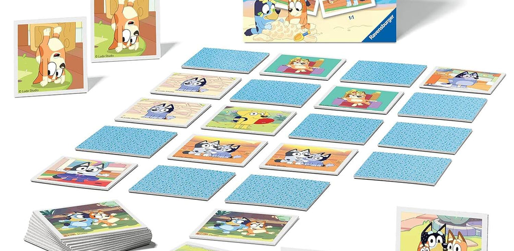 - This set of 48 high quality memory picture cards featuring all of your favourite Bluey characters. Play a matching memory game with Bluey and his friends. There are 24 different pairs to match up and collect in this classic game