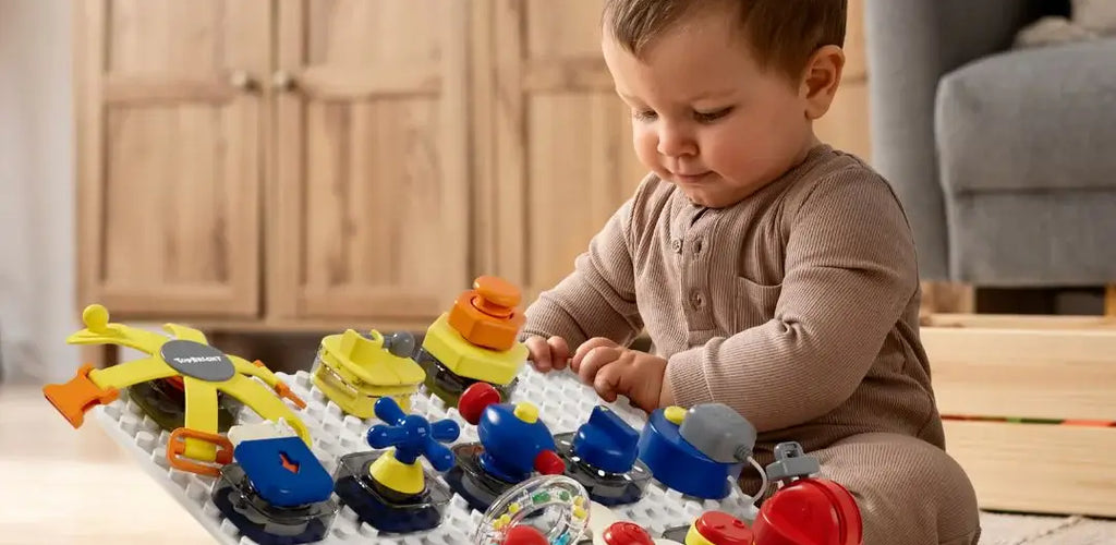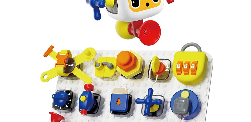 This all-in-one discovery toy evolves with your toddler! Whether exploring textures, solving how things work, or creating their own combinations, this busy board delivers hands-on learning and creativity in every play session. 🚂