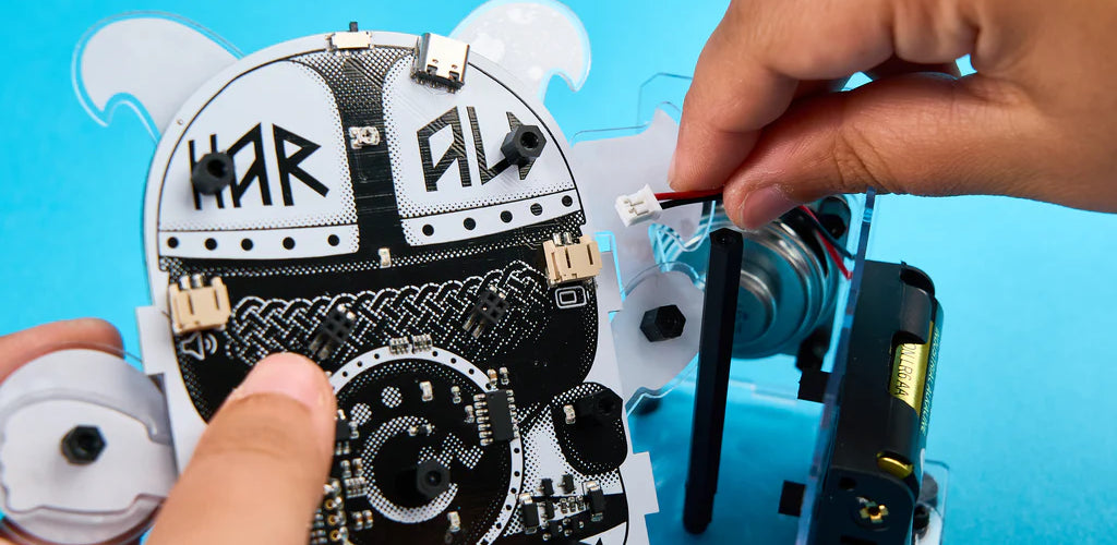 Harald isn’t just a robot — he’s a playful Viking companion that brings music and STEM together. Kids learn real electronics while ending up with a functioning Bluetooth speaker they built themselves, gaining confidence and sparking curiosity for future projects. ⚡
