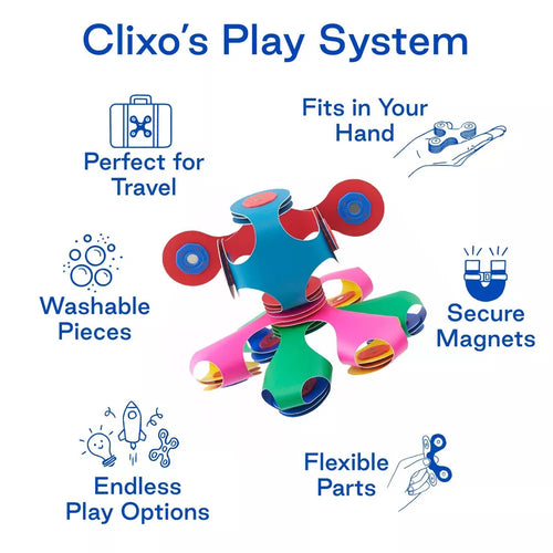 With Clixo Tiny & Mighty, a handful of pieces sparks a world of possibilities. Whether kids are creating simple shapes or experimenting with complex builds, this pocket-sized magnetic set grows with their creativity—offering hours of fun, learning, and discovery.