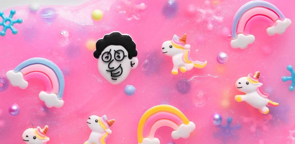 Iridescent, pastel-colored slime filled with magical unicorn-themed charms 🦄