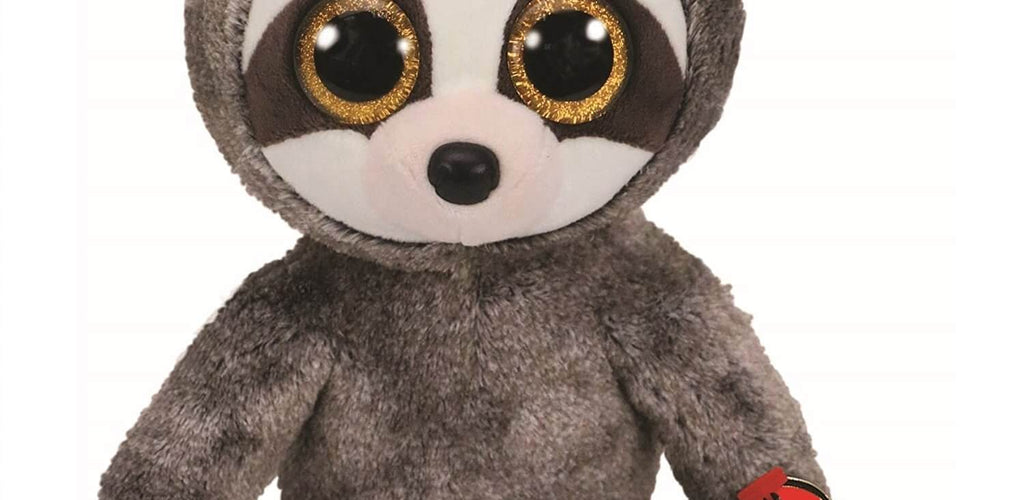 Dangler, the sloth, maybe slow, but he would like to let you know, he's plush and soft with big golden eyes, that sparkle and will mesmerize. He'd love to be a friend to you, and cuddle close the whole night through.