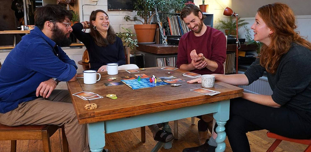 What’s in the box: 84 beautifully illustrated cards, scoring board, 6 wooden rabbit markers, voting tokens, and rulebook