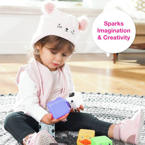 Each set features six unique, colorful critters, including a friendly frog, duck, elephant, pig, lion, and hippo. These blocks aren't just fun—they are valuable tools for early childhood development.