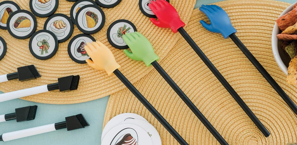 Fast-action game where players use tongs to grab matching snack cards 🍕