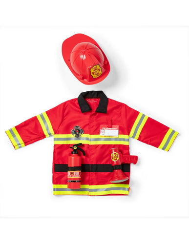 Complete firefighter outfit includes a bright red uniform jacket, sturdy helmet, and functional accessories 🚒