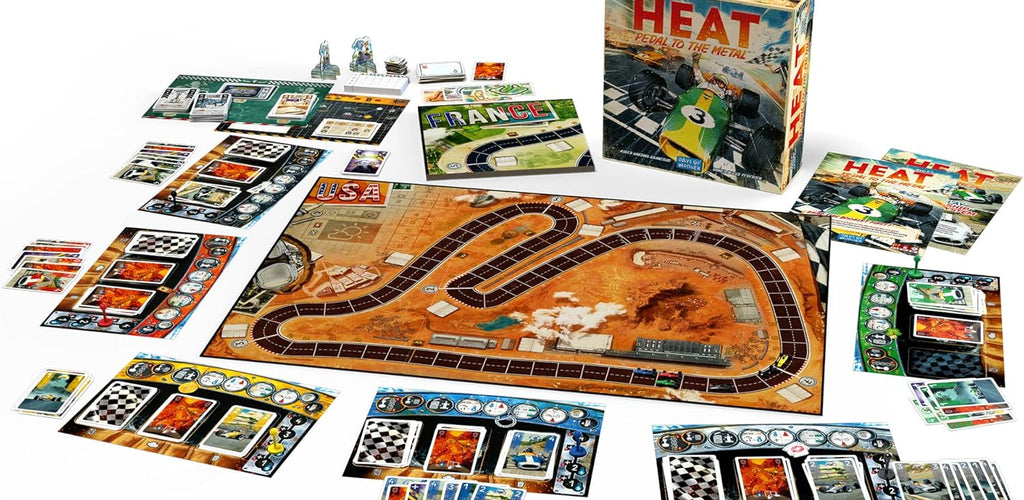 HEAT – Pedal to the Metal captures the excitement of Formula-style racing in a fast-paced yet strategic board game. Every race is a test of timing, risk, and smart choices—shift gears at the perfect moment, push your limits, and fight for victory. A thrilling experience that racing fans and board gamers will enjoy together 🚦
