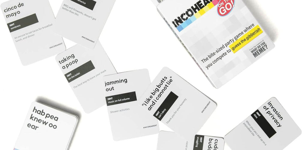What’s in the box: A portable deck of Incohearent cards and game instructions.