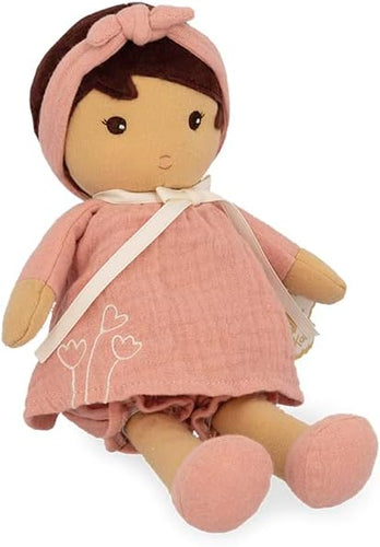 Soft-bodied baby doll dressed in classic pink and cream tones 👶
