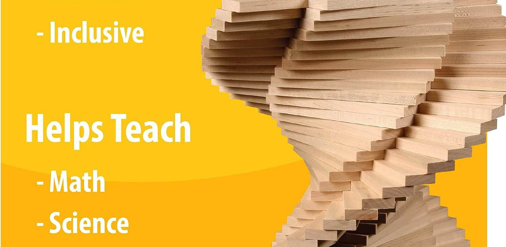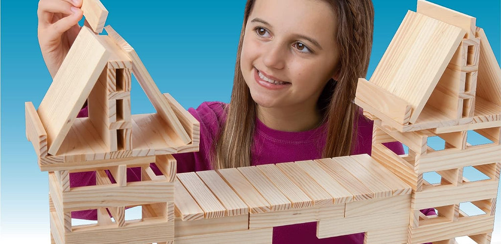 No connectors or fasteners—just stack, balance, and build
