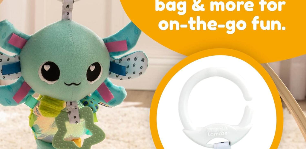 Meet Alise the Axolotl—a friendly, sensory-rich companion that keeps little hands and eyes engaged. From crinkling sounds to textured fabrics, this Clip & Go toy supports baby's development wherever you are. 🎀