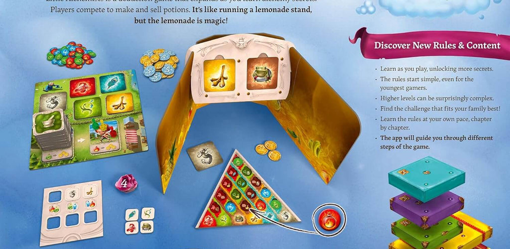 Little Alchemists is an enchanting family game that sparks creativity, memory, and logical thinking. With its colorful components, evolving challenges, and magical theme, it brings out children’s curiosity and joy, making every play a shared adventure of discovery 🧪