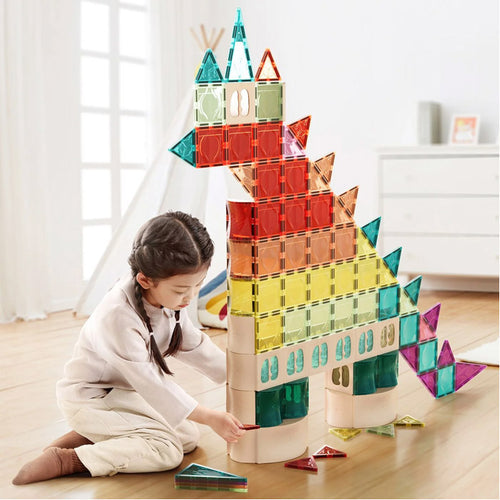 Playing with magnetic tiles helps develop spatial awareness, fine motor skills, creativity, problem-solving and engineering thinking, blending learning and play naturally.