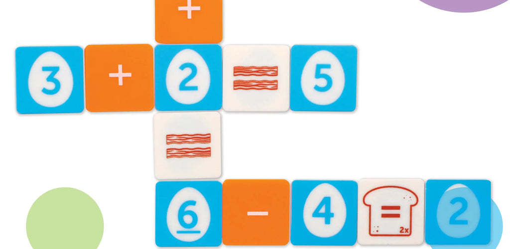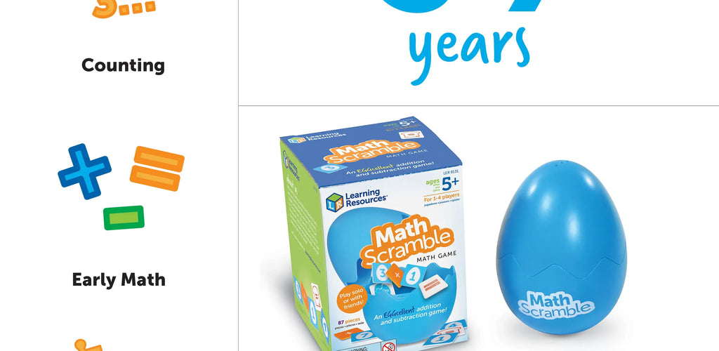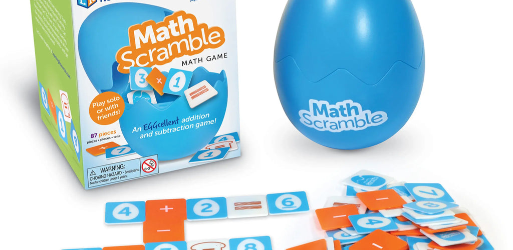 Shake up maths practice and make number fluency fun! Math Scramble is an engaging addition and subtraction tile game that helps children build confidence with early math skills through playful challenge and friendly competition. Whether playing solo or with up to three friends or siblings, kids race to solve equations and be the first to place all their tiles.