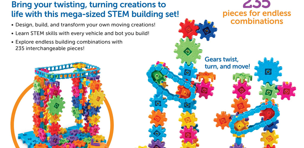 Includes 235 vibrant building pieces for creating large-scale, gear-powered structures that move and connect. 🏗️