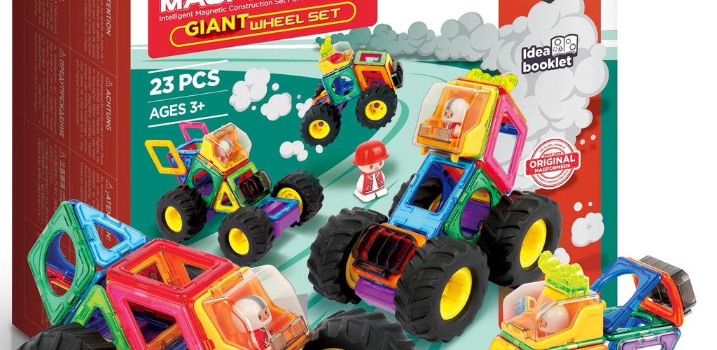 Action-packed 35-piece magnetic set with parts to build a rotating Ferris wheel 🎡