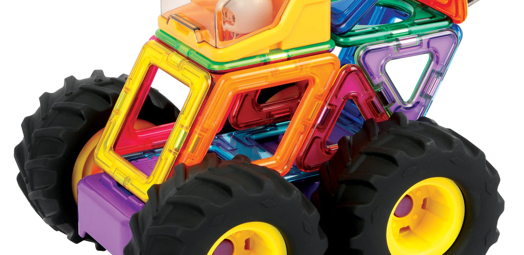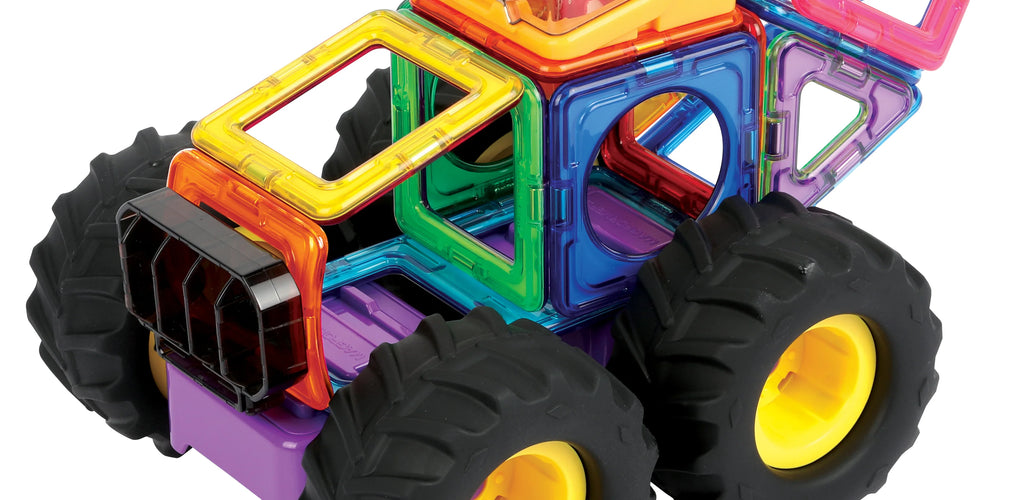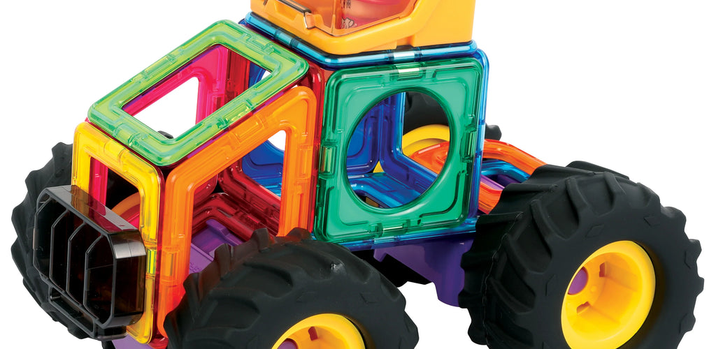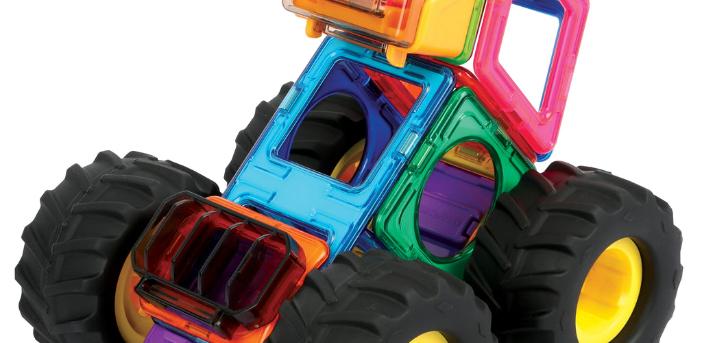 Includes magnetic squares, triangles, and special connectors for vertical construction
