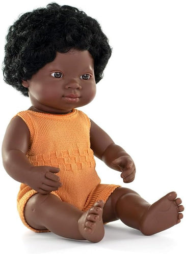 38 cm soft vinyl doll with realistic facial features and African heritage representation π§Έ