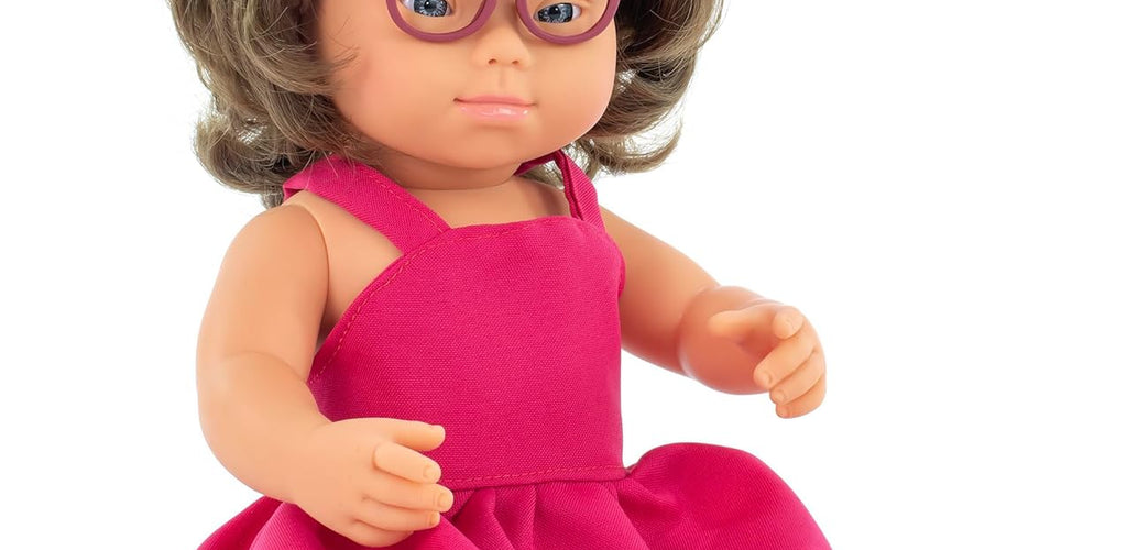 Miniland Caucasic Girl Doll with D.S. & Glasses – 38 cm