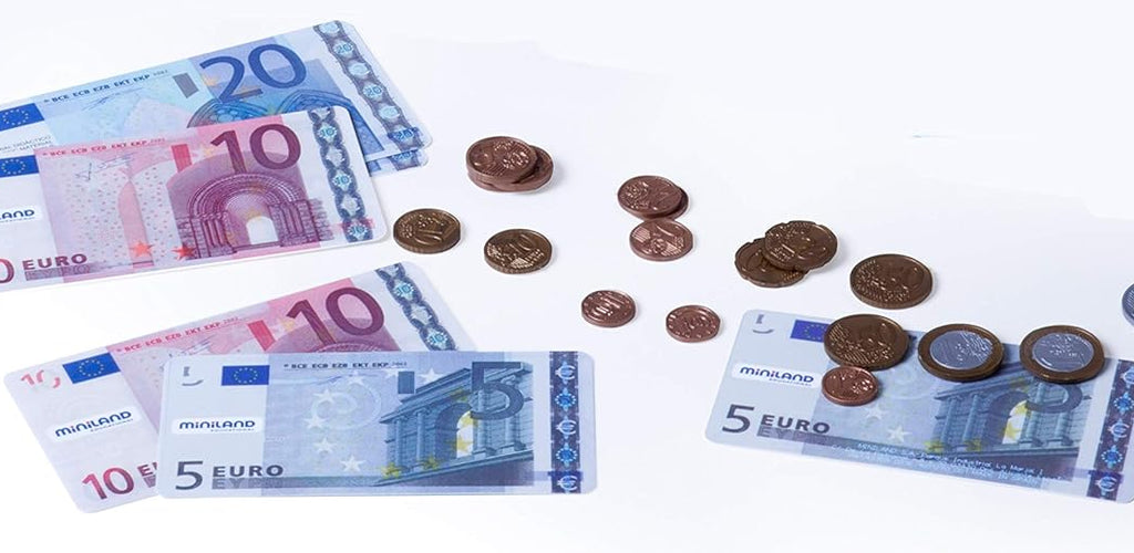 Interactive math game featuring realistic Euro currency bills and coins for authentic play 💶