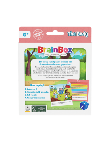 Explore the wonders of the human body with this fun, fast-paced game! BrainBox Human Body helps players improve memory and recall while sparking curiosity about anatomy, organs, senses, and more. An ideal gift for budding scientists, curious learners, or anyone who enjoys a good challenge 🔬
