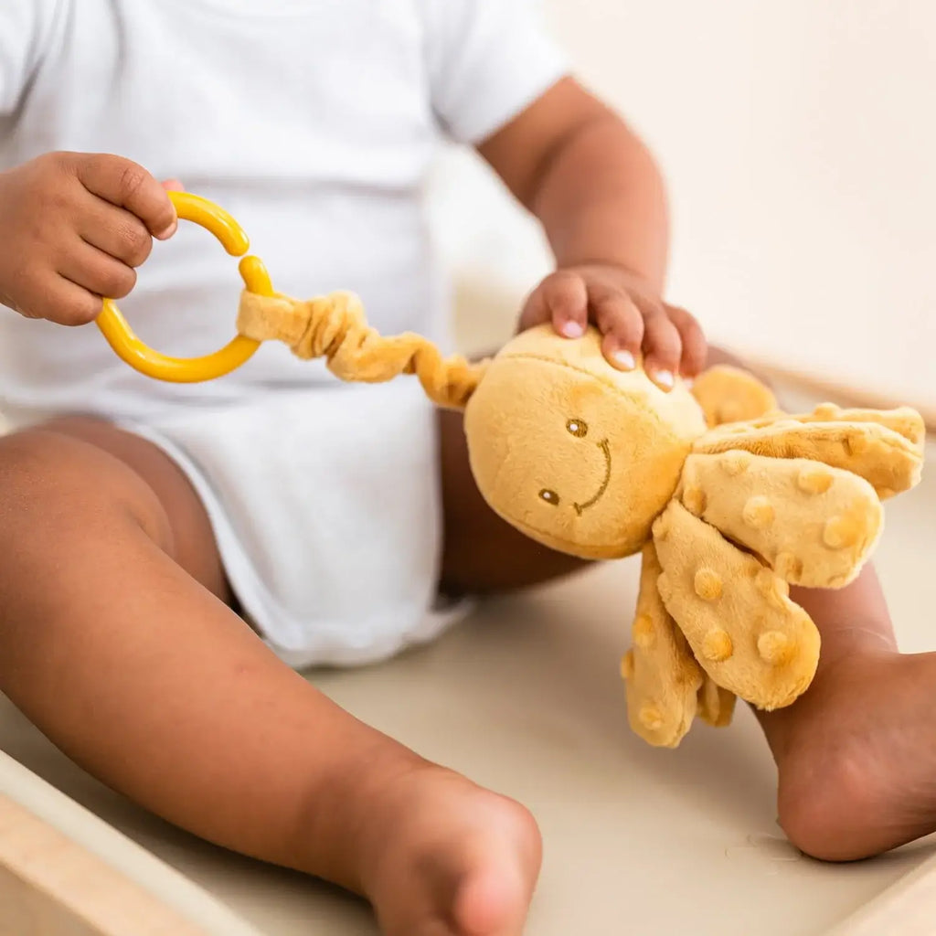 With its gentle vibrations and cuddly texture, this charming octopus quickly becomes a comforting companion for your little one. Whether hanging beside the crib or going along for car rides, it's designed to nurture curiosity, calmness, and connection from the very beginning. 💛