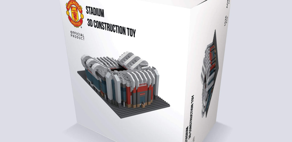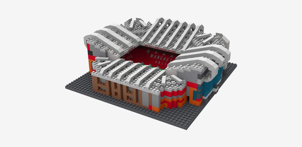 Construction toy that builds into a miniature replica of Old Trafford Stadium