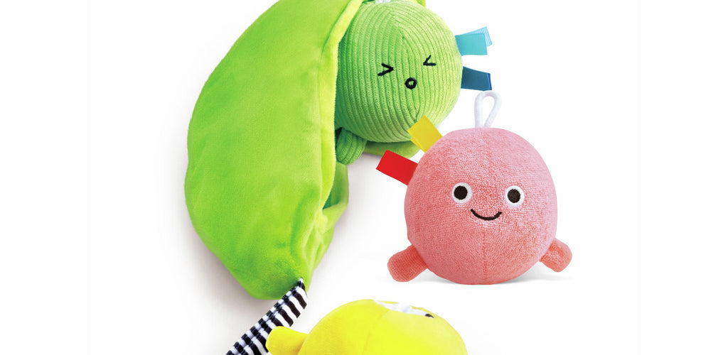 Each pea features a smiling embroidered face to encourage emotional connection 😊