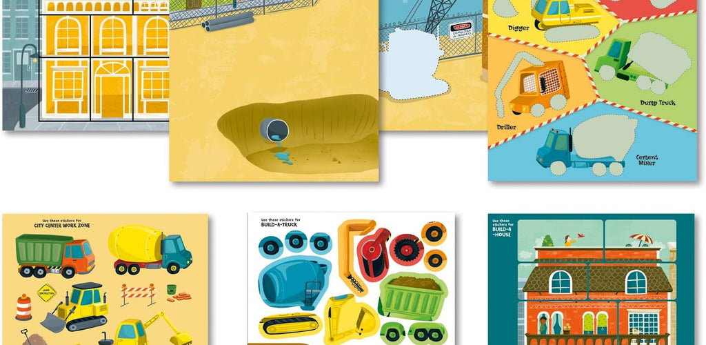 Features diggers, cranes, bulldozers, cones, and more 🏗️