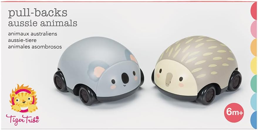 What’s in the box: 4 pull-back vehicles shaped as native Australian animals.