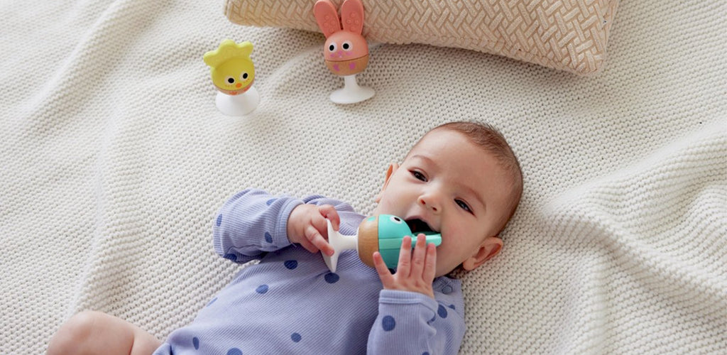 Made from a blend of natural wood and soft silicone, safe for babies and soothing for teething.
