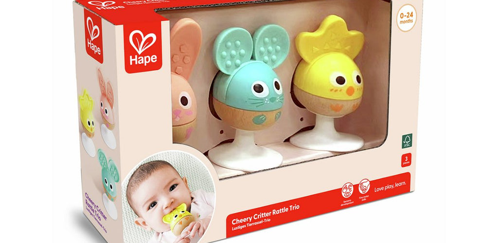 The Hape Cheery Critter Rattle Trio is a playful and practical set that delights babies while supporting early development. With engaging sounds, safe textures, and cheerful designs, these rattles are perfect for keeping little ones entertained and learning every day. 🎶