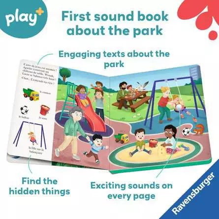 Interactive sound book with 12 sturdy pages filled with colourful illustrations of the park.
