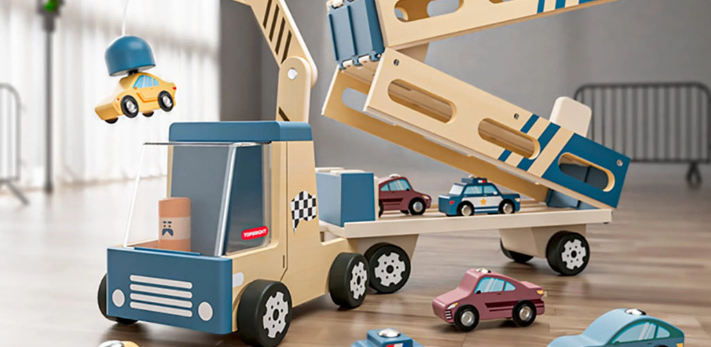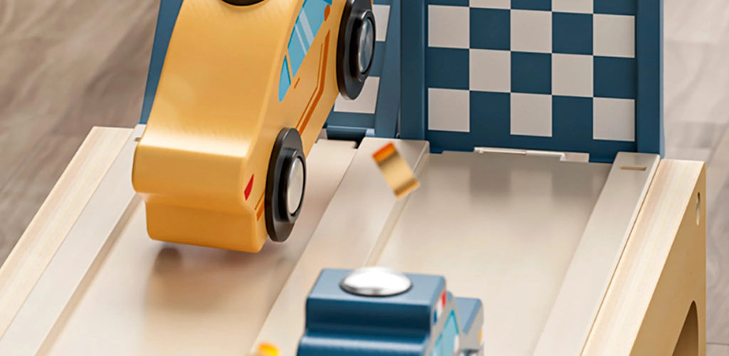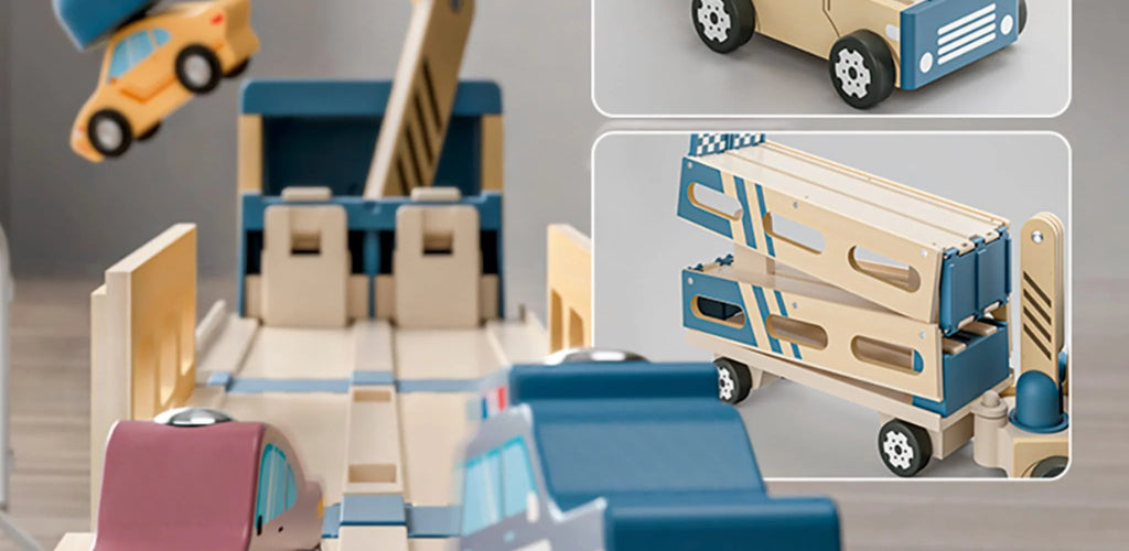 With space for up to 8 cars on two levels, the transporter doubles as smart storage, encouraging tidy-up habits after playtime.