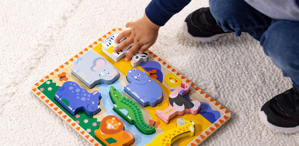 A vibrant and engaging first puzzle that combines hands-on learning and creative play, inspiring toddlers to explore the wonders of the safari while developing essential skills.