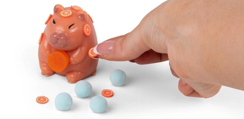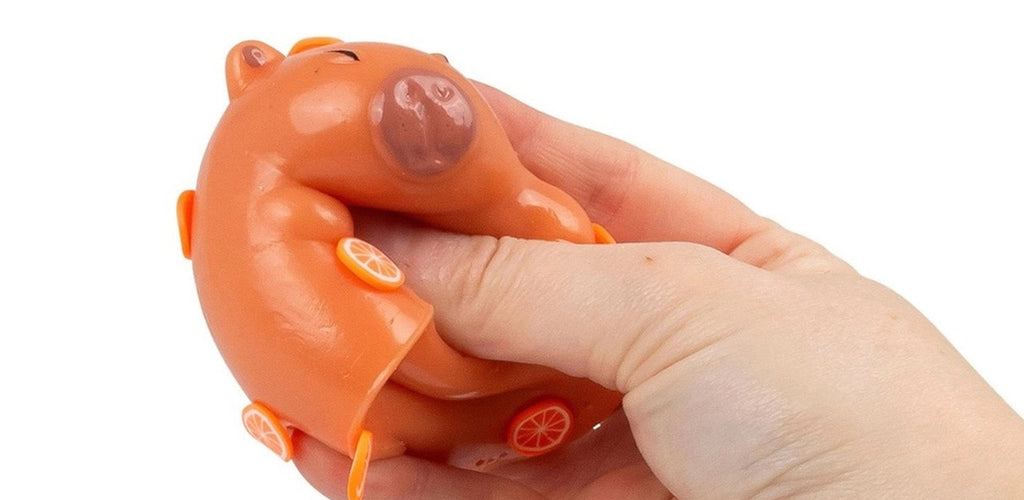 This adorable capybara-shaped squishy features a super sticky, stretchy texture that makes it incredibly satisfying to squeeze, squish, and stretch.