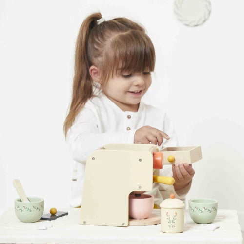 A delightful wooden pretend coffee machine set that lets children become real mini baristas ☕