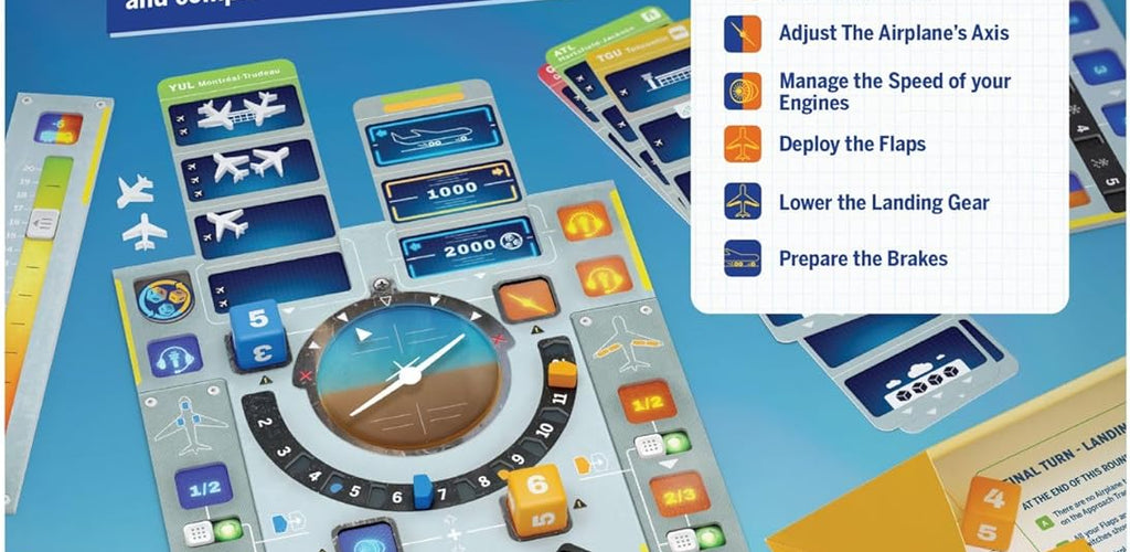 Cooperative flight simulation board game suitable for ages 12 and up, designed for 2 players 🛬