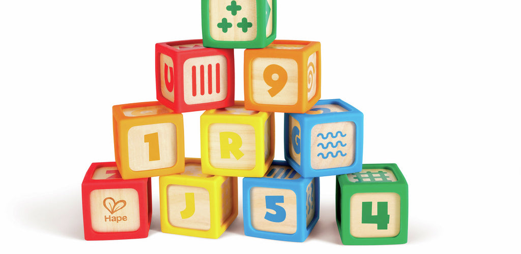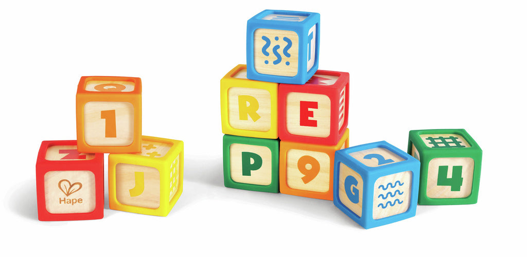 Features letters, numbers, and patterns on the blocks to encourage early recognition and playful learning