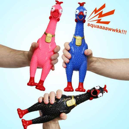 Squeezable rubber chicken that lets out a hilarious, loud squawk
