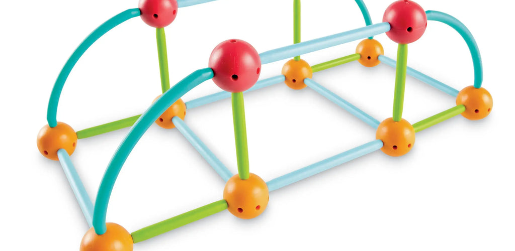 Includes 58 durable pieces: straight sticks, curves, and connectors for constructing both 2D and 3D shapes