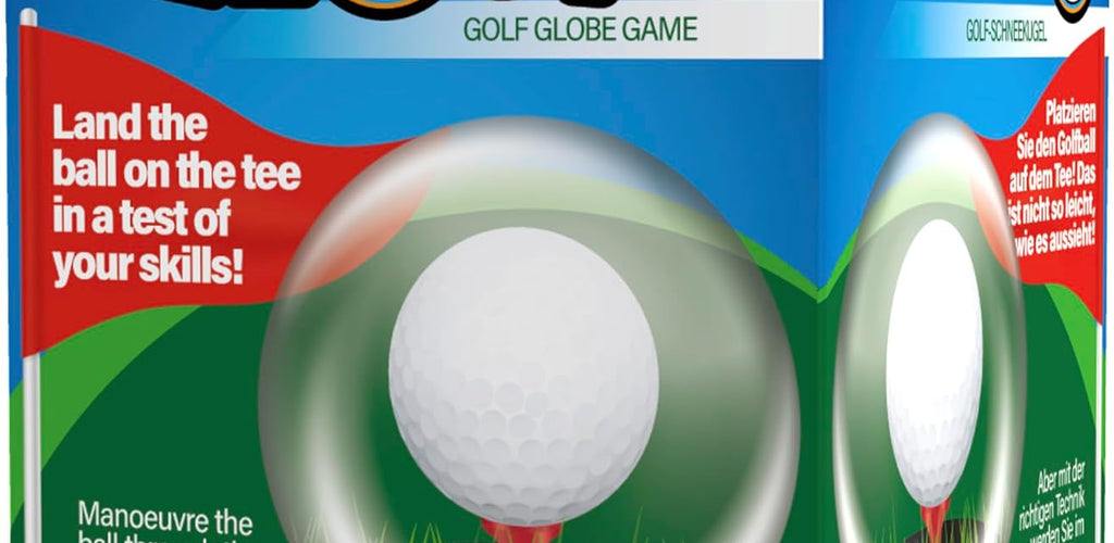 Deceptively Simple: Guide the tiny golf ball through the water-filled globe and balance it perfectly on the tee
