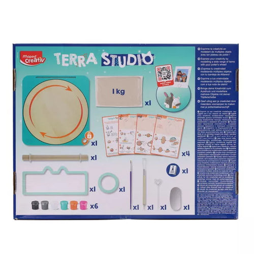 What’s in the box: potter’s wheel, modelling clay, shaping tools, paints, brushes and instructions.