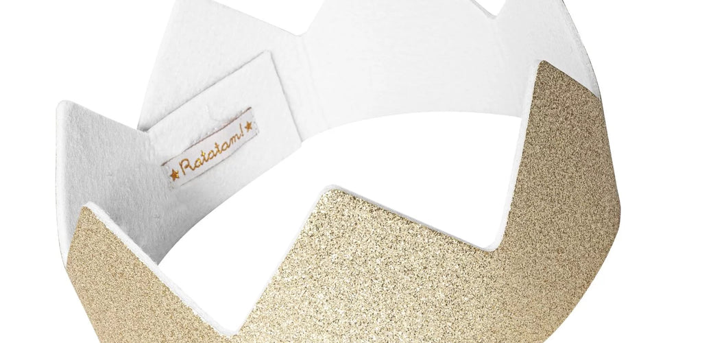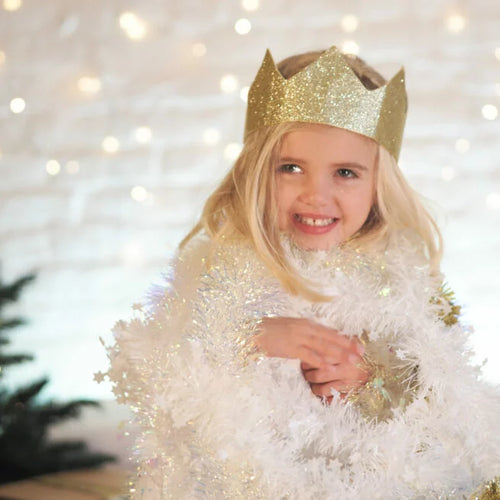 Elegant princess crown made of soft felt with shimmering gold glitter.