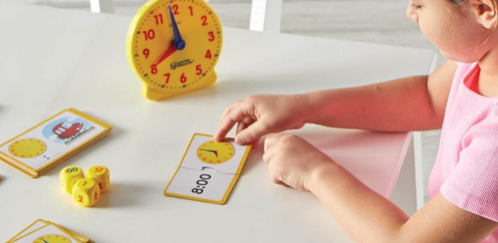 Features 24 double-sided puzzle cards (analog and digital), 12 double-sided daily activity cards, and 3 Time Dice to make learning interactive and fun